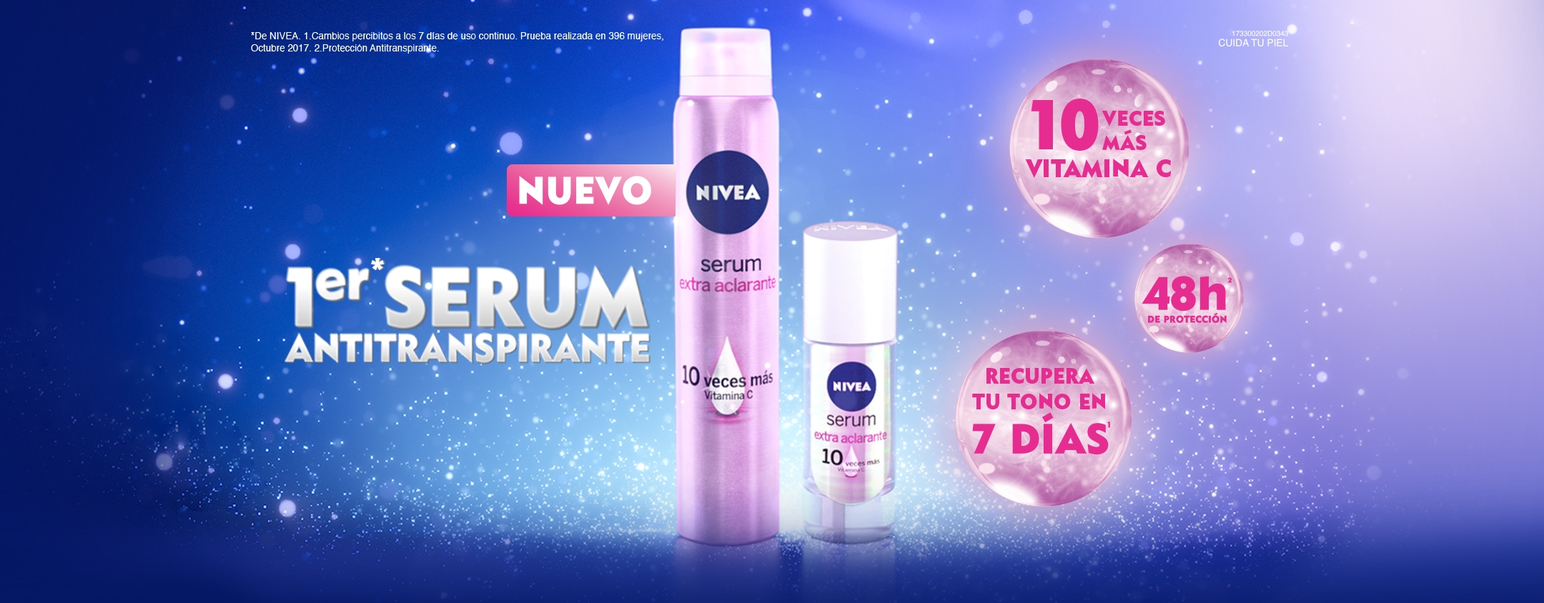 NIVEA Serum Extra Aclarante es el 1er* Serum Antitranspirante para tus axilas. Ofrece un beneficio que te ayuda a recuperar tu tono en 7 días2 gracias a su fórmula aclarante con 10 veces más vitamina C3 y tecnología de rápida absorción.